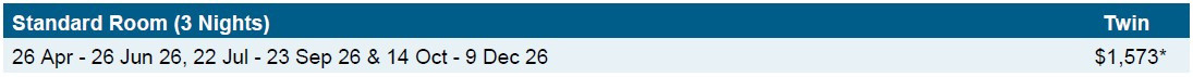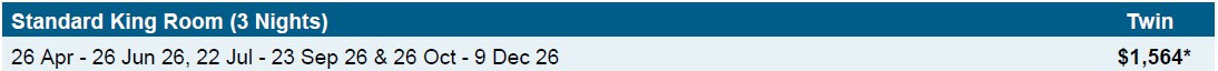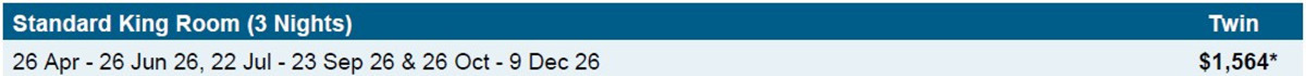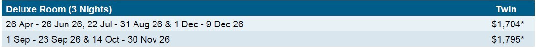 NOTE: Based on stays between Friday - Sunday. Travel including Monday to Thursday. will incur a surcharge, please enquire.