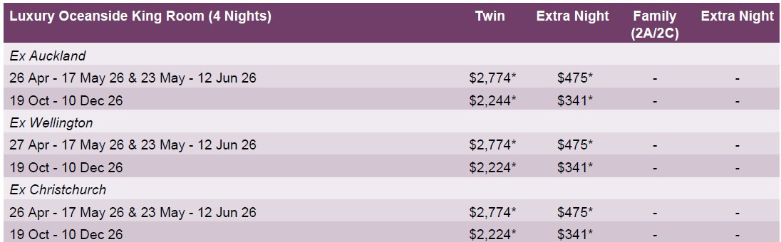 Important: An additional $10 per person each way applies to travel to/from Fiji on Friday, Saturday & Sunday.