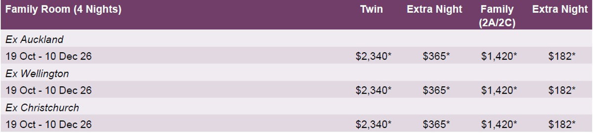 - Use of non-motorised water sports and daily resort activities, unlimited movies on demand