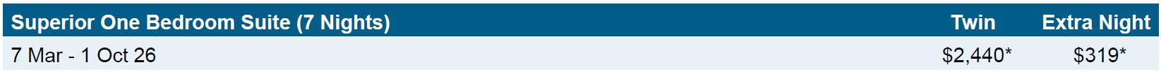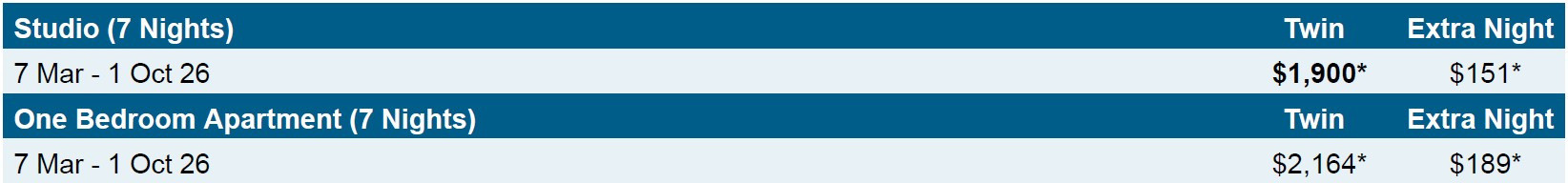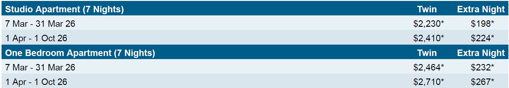 PACKAGE TERMS & CONDITIONS: It is our policy to present the cost of our holidays inclusive of all airport and government charges. Please accept however that these charges are not within our control, therefore we reserve the right to pass on any increase. Travel agent professional service fees where charged, will be additional to the advertised prices. Closeout and blackout periods apply over school holidays and peak holiday periods & availability of seats & rooms is likely to be very limited over this time . Prices are based on direct flights unless stated otherwise. Payment & ticketing deadline - no more than 7 days after reservation confirmation. Valid for sales to 27 Feb 2026. Valid for travel commenced and completed within the period 7 Mar 2026 to 1 Oct 2026 (unless otherwise specified).Prices are ex Auckland. For departures ex Wellington please add $160 per adult and add $160 per child. For departures ex Christchurch please add $160 per adult and add $160 per child. FARE BASIS: PWRKP33Z NZ operated services only. Stopovers are not permitted. Routing: CHC/WLG-AKL- NOU (NZ) and v.v. If you require other gateways please book NZ domestic add-on fares in P class Due to flight schedules additional nights may be required at own expense. Airfares are non-refundable and non transferable. Capacity limitations apply and may not be available on all services. Airfares subject to change/withdrawal at any time. Fares subject to Government approval. If you'd like to travel outside of the advertised travel dates please note additional costs will apply. Please ask in store for pricing and availability. Where this service is operated by a code-partner only The Works product is available and inflight service differs to that on Air New Zealand operated services. Prices shown are based on per person costs in New Zealand Dollars, for payment by bank transfer or credit card. Credit card fees apply. Capacity limitations apply and may not be available on all services. Travel requiring an overnight stay in New Zealand will be at passengers own expense. Events beyond our control such as currency fluctuations and changes to the price of aviation fuel may result in prices variations . Strict cancellation fees apply. Packages are based on consecutive nights. For split stays please contact your travel consultant. For full terms and conditions and cancellation fees please contact your local travel agent for more information.. ISSUE DATE: 16 Feb 26.