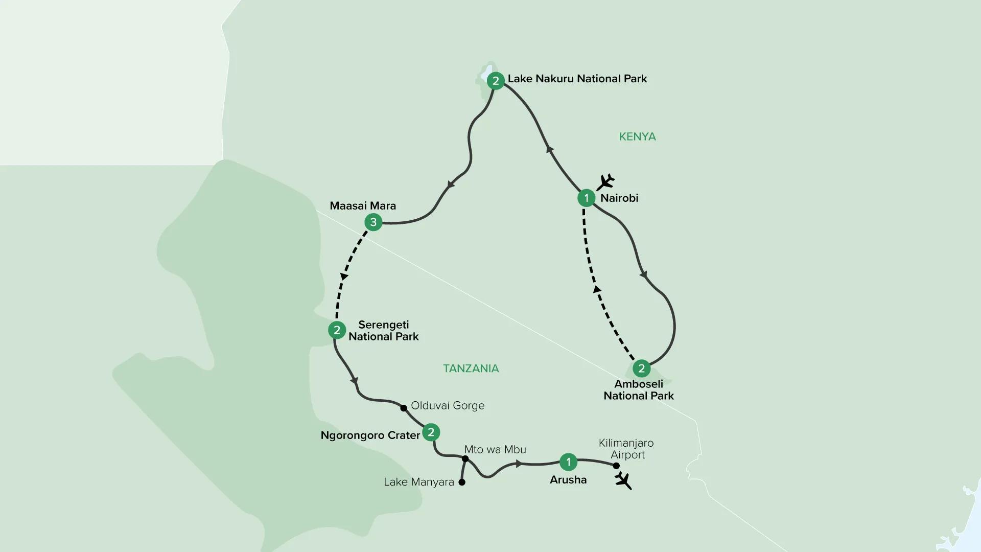 Your spectacular journey through East Africa draws to an end today. After breakfast, transfer to Kilimanjaro International Airport for your onward flight.