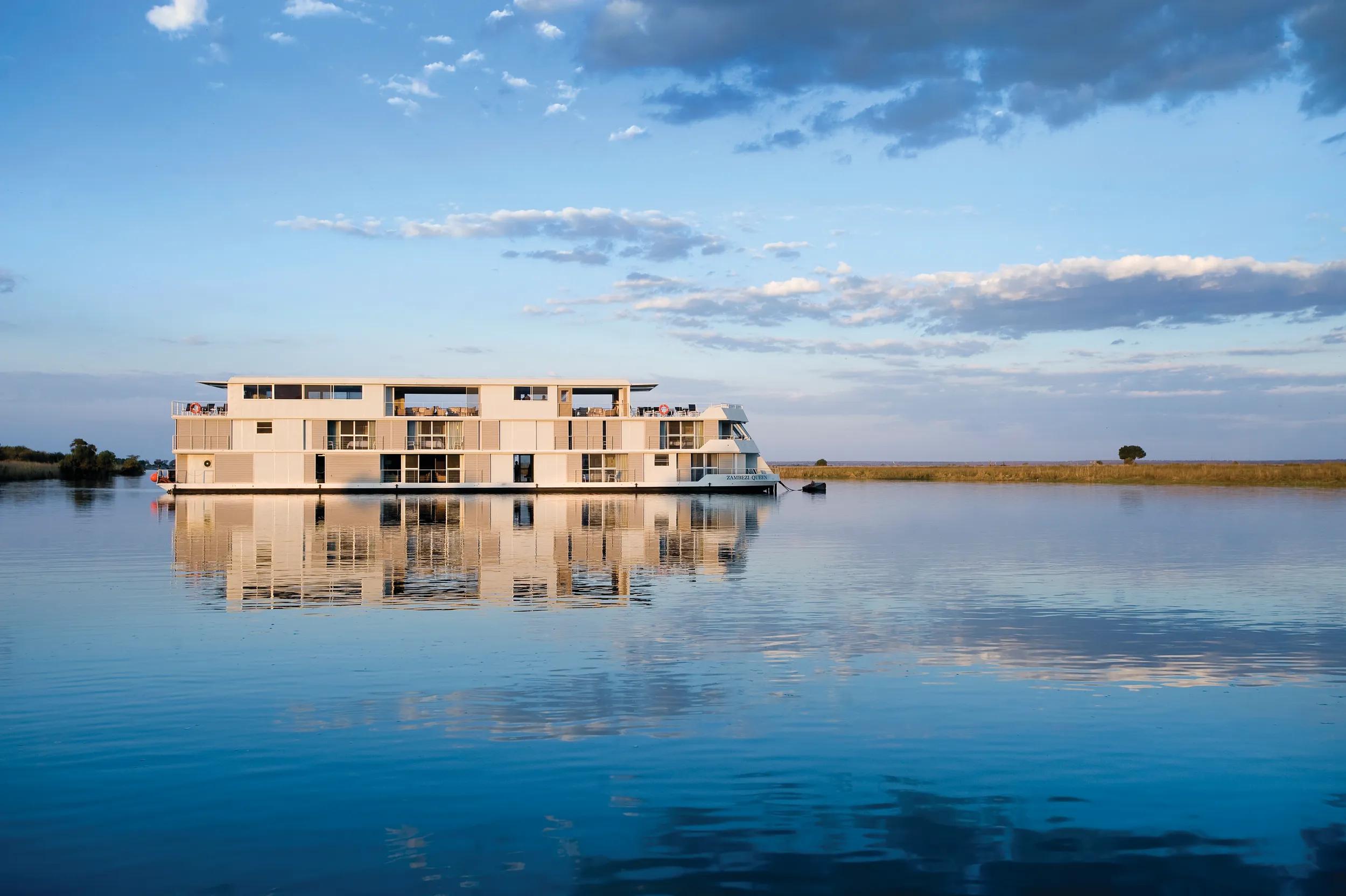 Depart Camp Okavango by light aircraft for Kasane Airport, then transfer to our luxurious houseboat, the Zambezi Queen. The 42-metre-long boutique vessel will transport us along the Chobe River over three nights. We settle into our elegant suites and experience the African wilderness while drifting along this most biodiverse waterway.