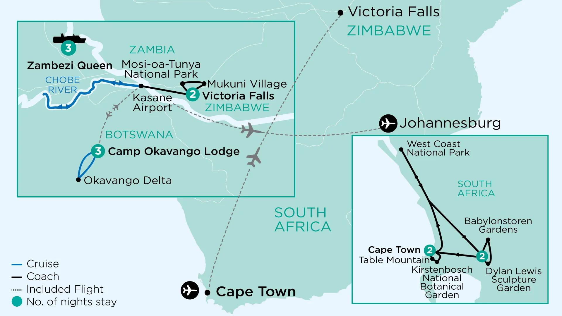Day 13: Disembark Zambezi Queen. Fly Kasane Airport to Johannesburg Airport (South Africa)