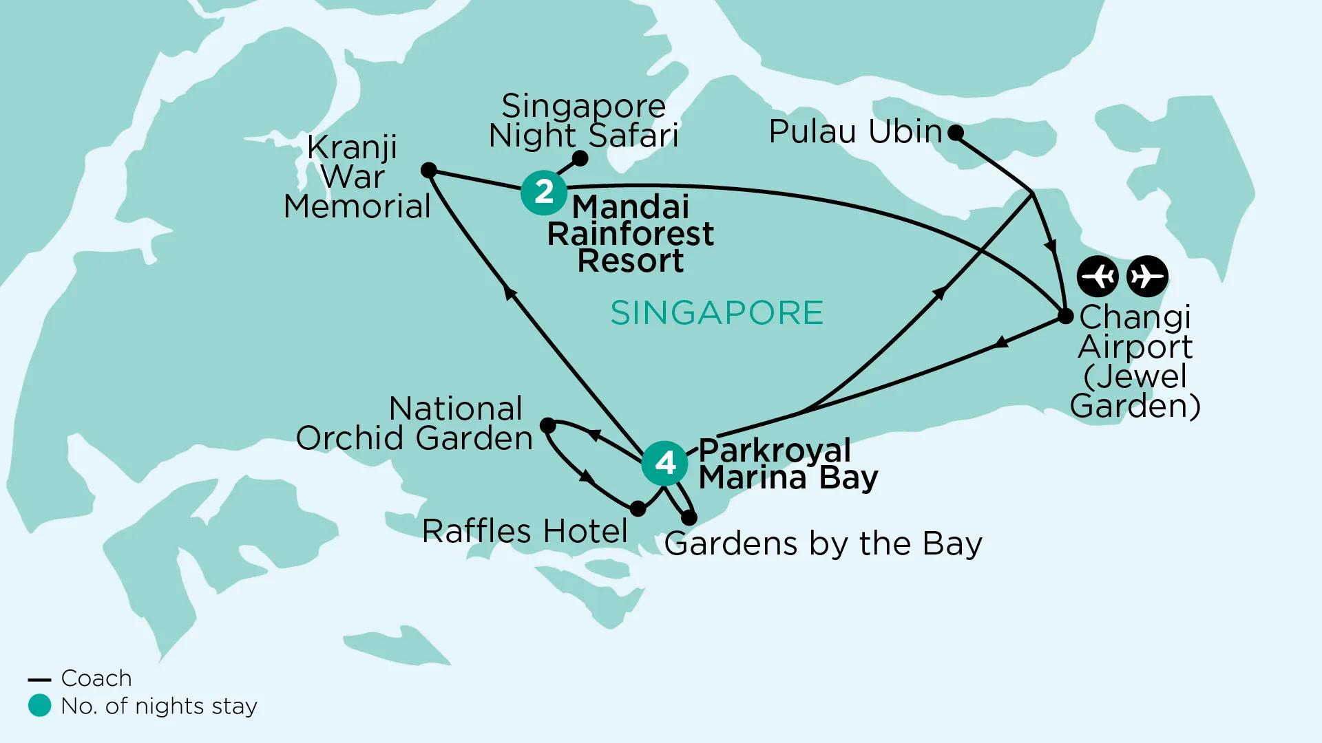 This morning, visit Pulau Ubin, an island which remains largely untouched by development. The island is home to one of Singapore’s last remaining traditional villages, or kampongs. The Chek Jawa Wetlands, one of the country’s most biodiverse ecosystems, is also found here. Afterwards, we visit Jewel Changi airport, an incredible glass and steel dome development, open to international travellers and locals alike. Explore the lush green oasis of the Shiseido Forest Valley and marvel at the Rain Vortex. Alternatively, you have the option to visit the Changi Museum.