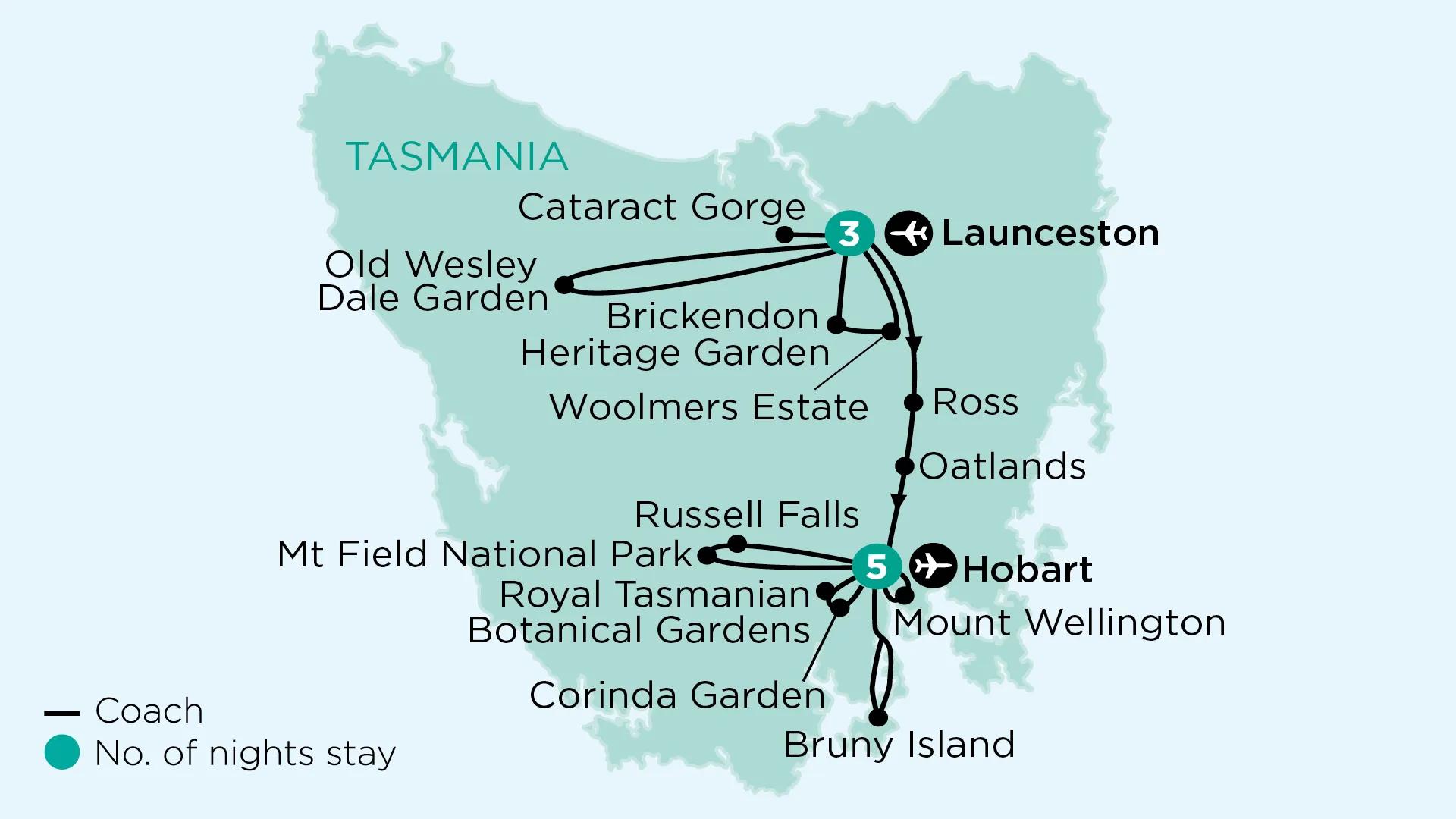 Discover the delights of central Tasmania as we drive to Hobart. Enjoy a visit to the former house and garden of artist John Glover, before admiring the cottage gardens of the historic towns of Oatlands and Richmond. Arriving in the town of Ross, we pause to view its convict-built bridge and take in its cottage gardens, before making our way to Hobart.
