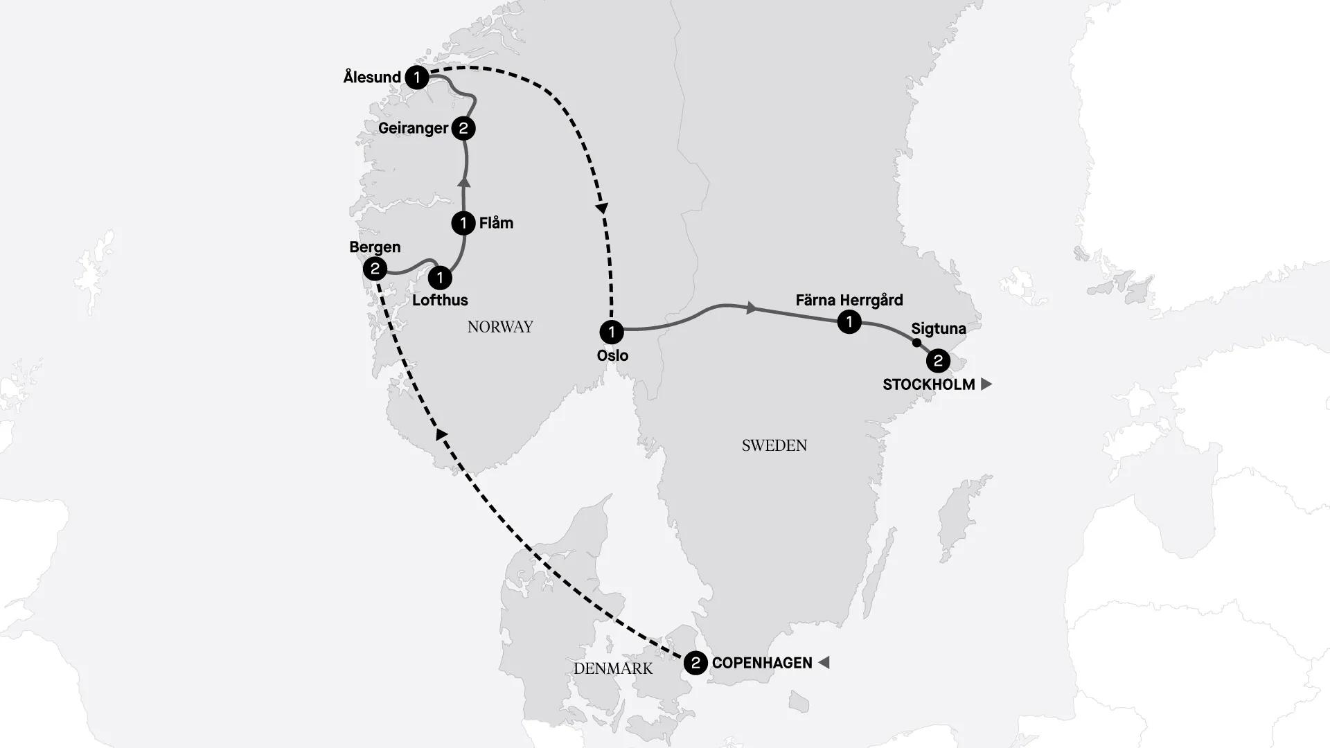 This morning, visit the Old Town of Sigtuna, a medieval town that dates back to AD 980, featuring colourful wooden houses, old church ruins and runic stones. Later, arrive in Stockholm, the largest of the Nordic cities. Known as the ‘Venice of the North’, Stockholm is built upon an archipelago of islands and canals. Tonight, enjoy a special farewell dinner at Fem Små Hus restaurant, located in the Old Town.