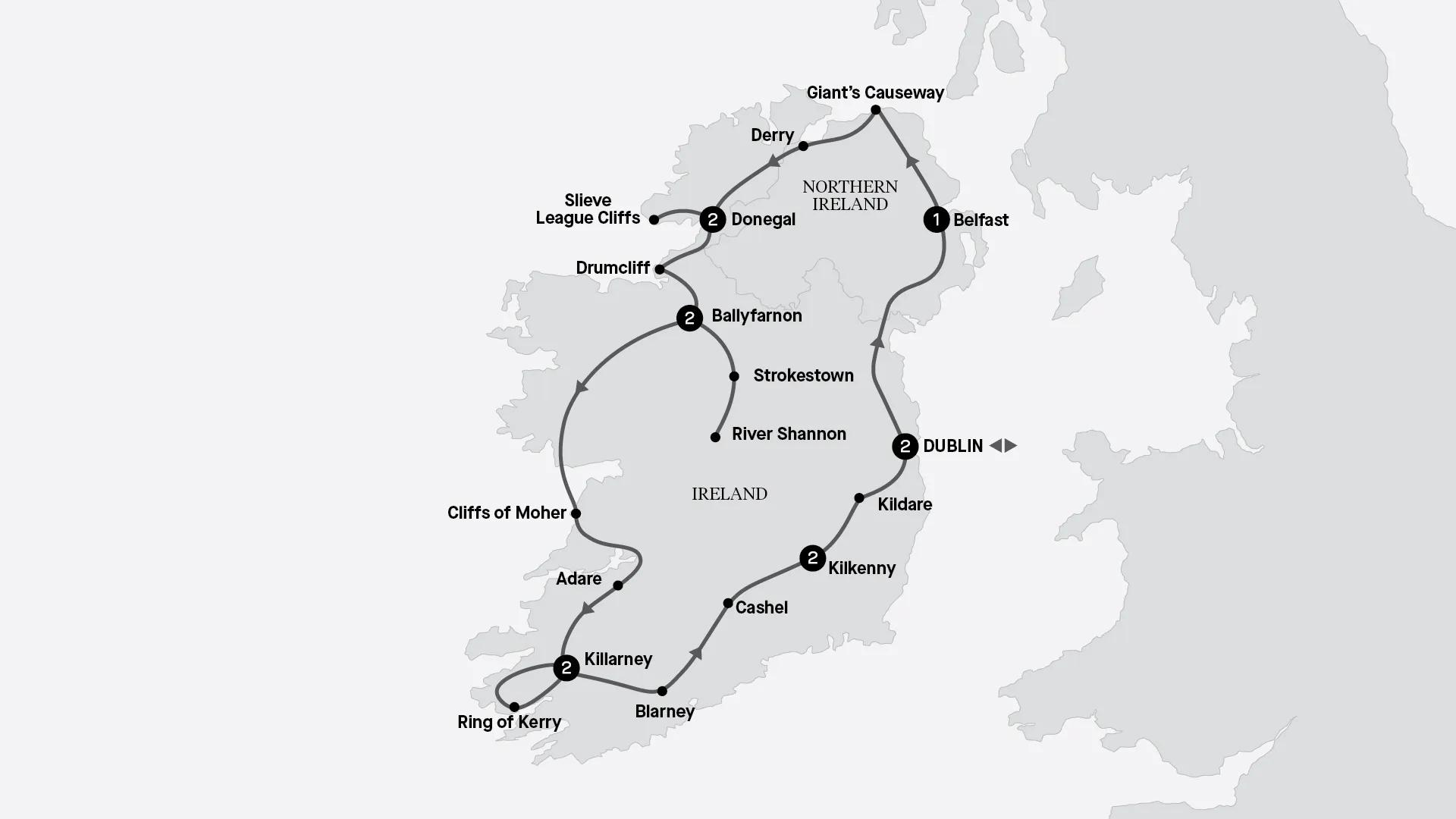 Set out on a guided tour of Dublin and allow yourself to become enchanted by this historic city’s iconic landmarks and hidden gems as your expert guide shares the fascinating stories behind each stop. Venture to the city of Belfast in Northern Ireland, where you’ll pay a visit to the iconic Titanic Belfast, offering a poignant journey through the history of the ship. This evening, relish a sumptuous welcome dinner, showcasing delicious Irish cuisine.
