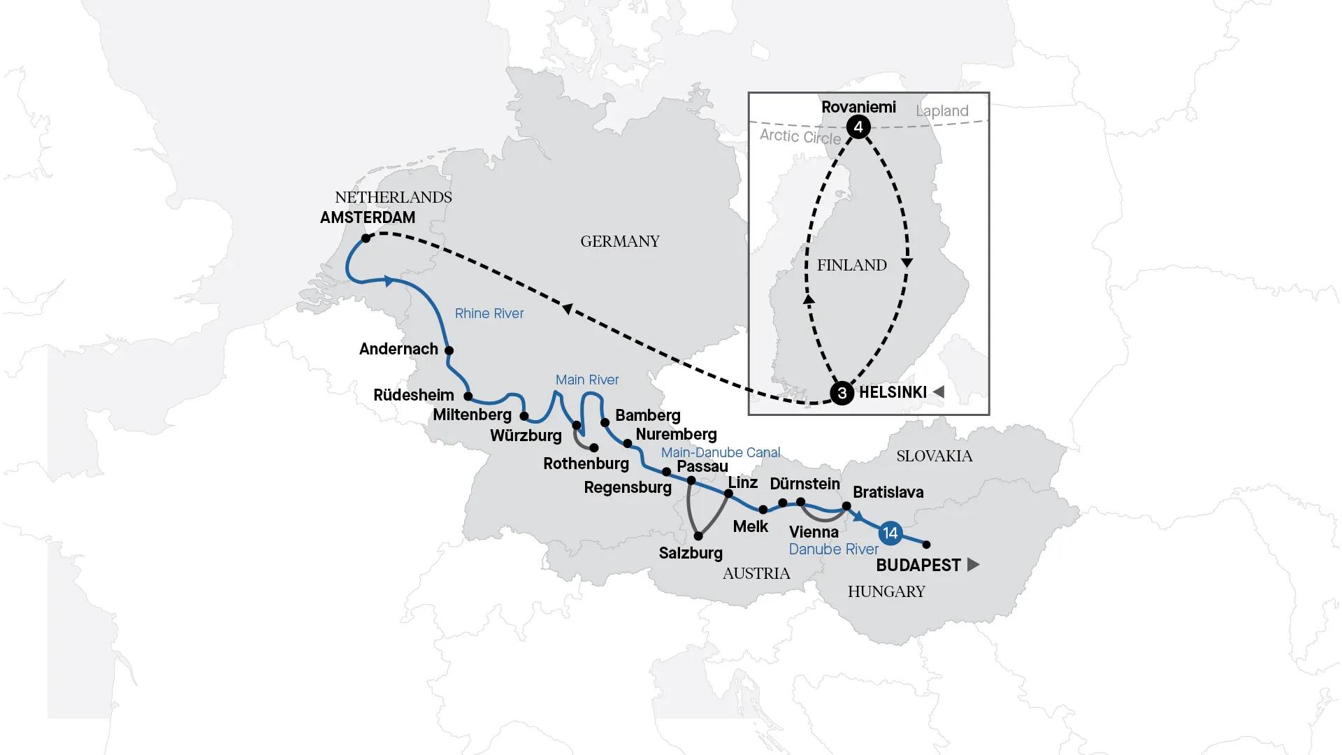 Your extraordinary European adventure concludes today. Following breakfast, say goodbye and be transferred to the airport.