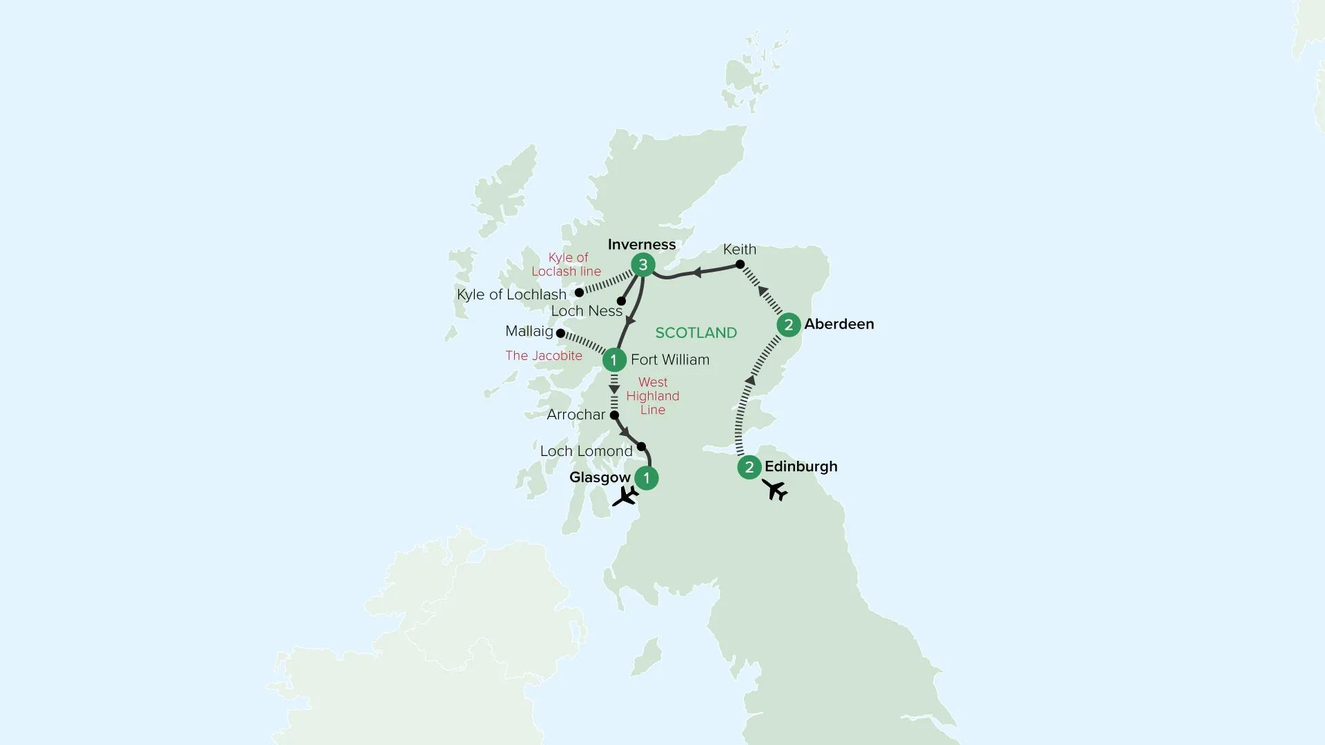 Depart Aberdeen this morning and board your train northwest towards Inverness. En route, alight in the whisky town of Keith in the heart of Speyside, Scotland’s most celebrated whisky-producing region. Visit one of the area’s historic distilleries, where a guided tour reveals the whisky-making process — from malting and mashing to distillation and maturation — followed by a tasting of the region’s smooth, distinctive style.