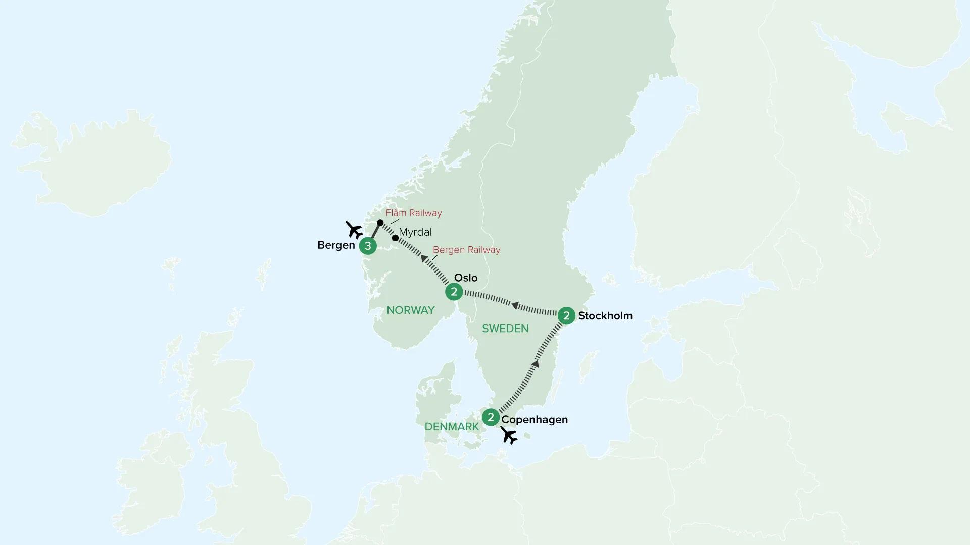 Transfer to Stockholm Central Station for your rail journey to Oslo. Sit back and relax as the train carries you across the Scandinavian countryside into Norway. On arrival, transfer to your hotel and enjoy the remainder of the day at leisure before dinner this evening.