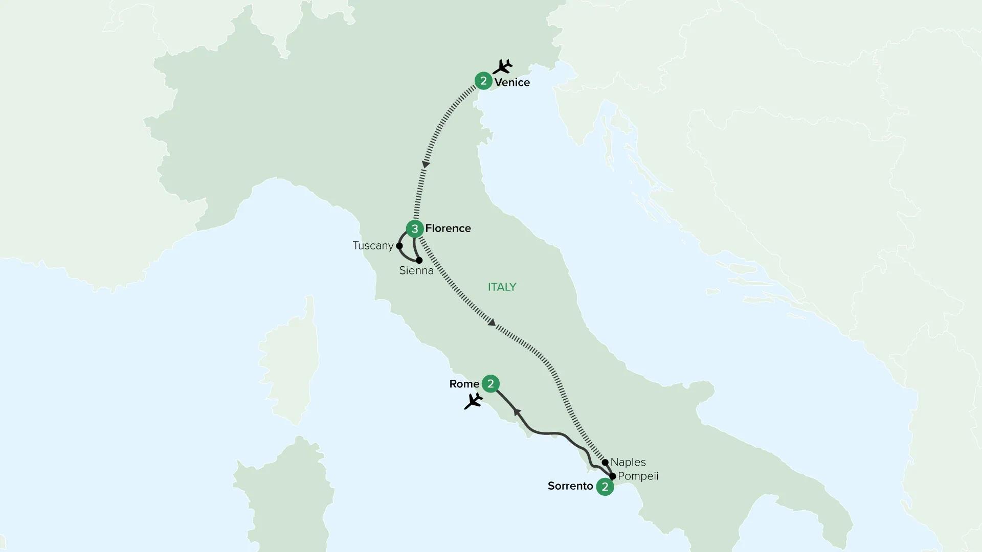 Your great Italian journey comes to an end today, after breakfast, with a transfer to the airport.