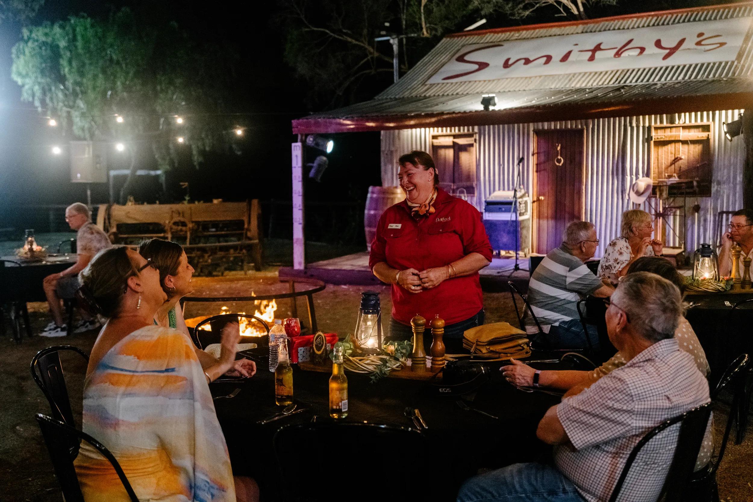 Experience the ultimate dinner adventure. Begin your evening with the mesmerising Silver-Tails Sunset rail journey, soaking in the breathtaking sunset over the floodplains while indulging in signature canapés and drinks aboard a heritage rail motor. Then, immerse yourself in the unforgettable Smithy’s Outback Dinner & Show experience under the stars, savouring a delectable two-course camp oven themed dinner, freshly baked damper and billy tea.