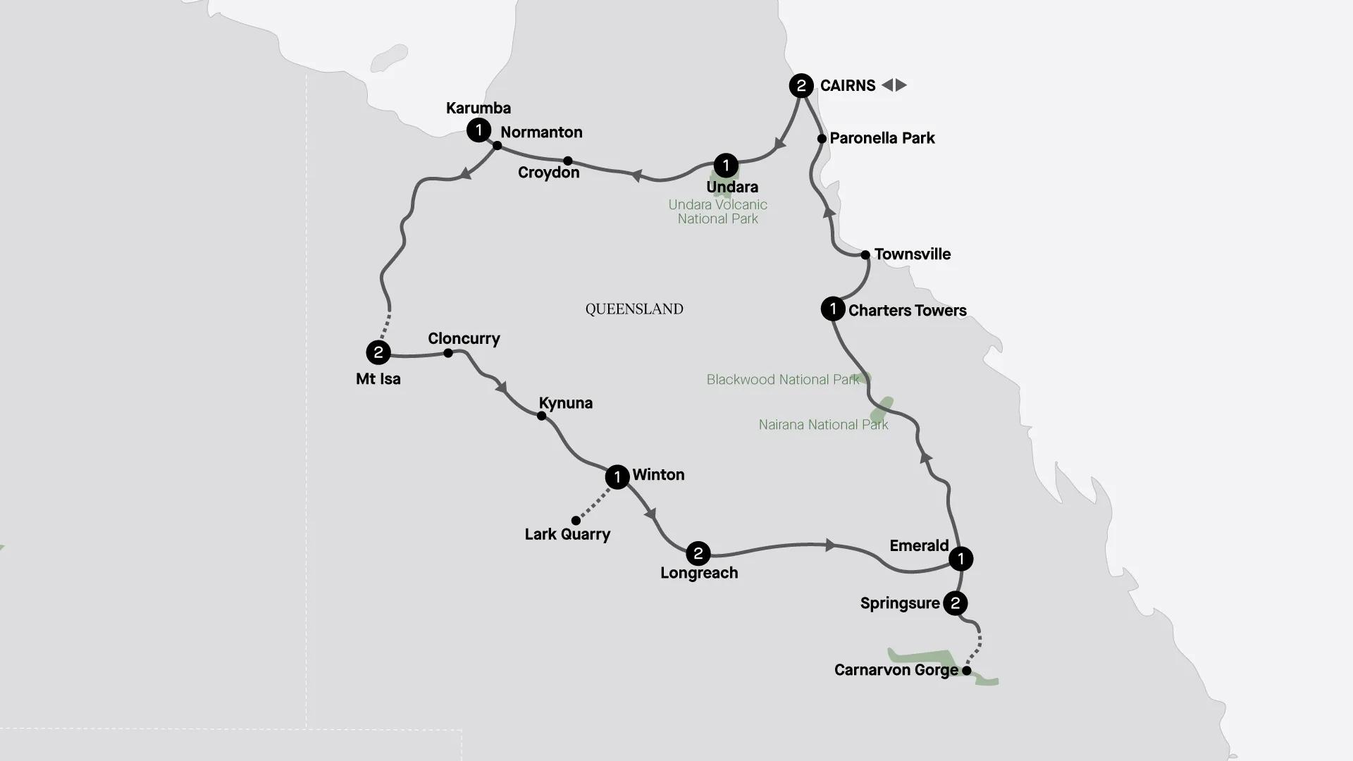 Embark on a drive to the outback town of Cloncurry. After some time here, visit the Waltzing Matilda Centre – the first museum in the world dedicated to a song, which also includes a nostalgic light and sound show in the Billabong Theatrette. Within the centre, there is also the Qantilda Pioneer Place Museum, which honours the accomplishments and hardships of Winton's pioneers. After time exploring these exhibits, wander the Outback Regional Gallery, which houses a range of beautiful individual and touring artwork. Later, arrive in Winton in time for dinner.