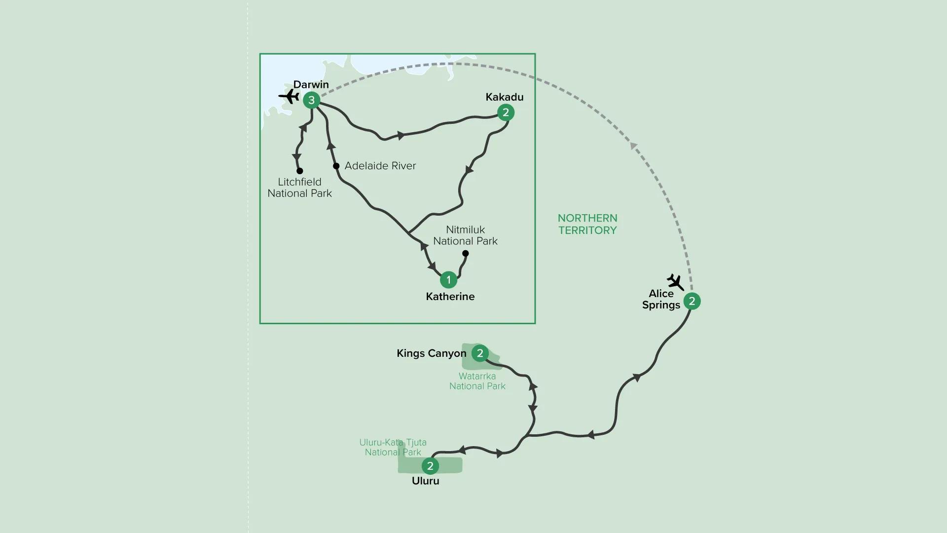 Transfer to the airport for your flight to Darwin (not included) and be met on arrival. This afternoon, enjoy a sightseeing tour of Darwin. Admire the architecture of this tropical capital, take a leisurely stroll through the Botanic Gardens, and visit the Darwin Museum and Art Gallery and the Royal Flying Doctor Base.