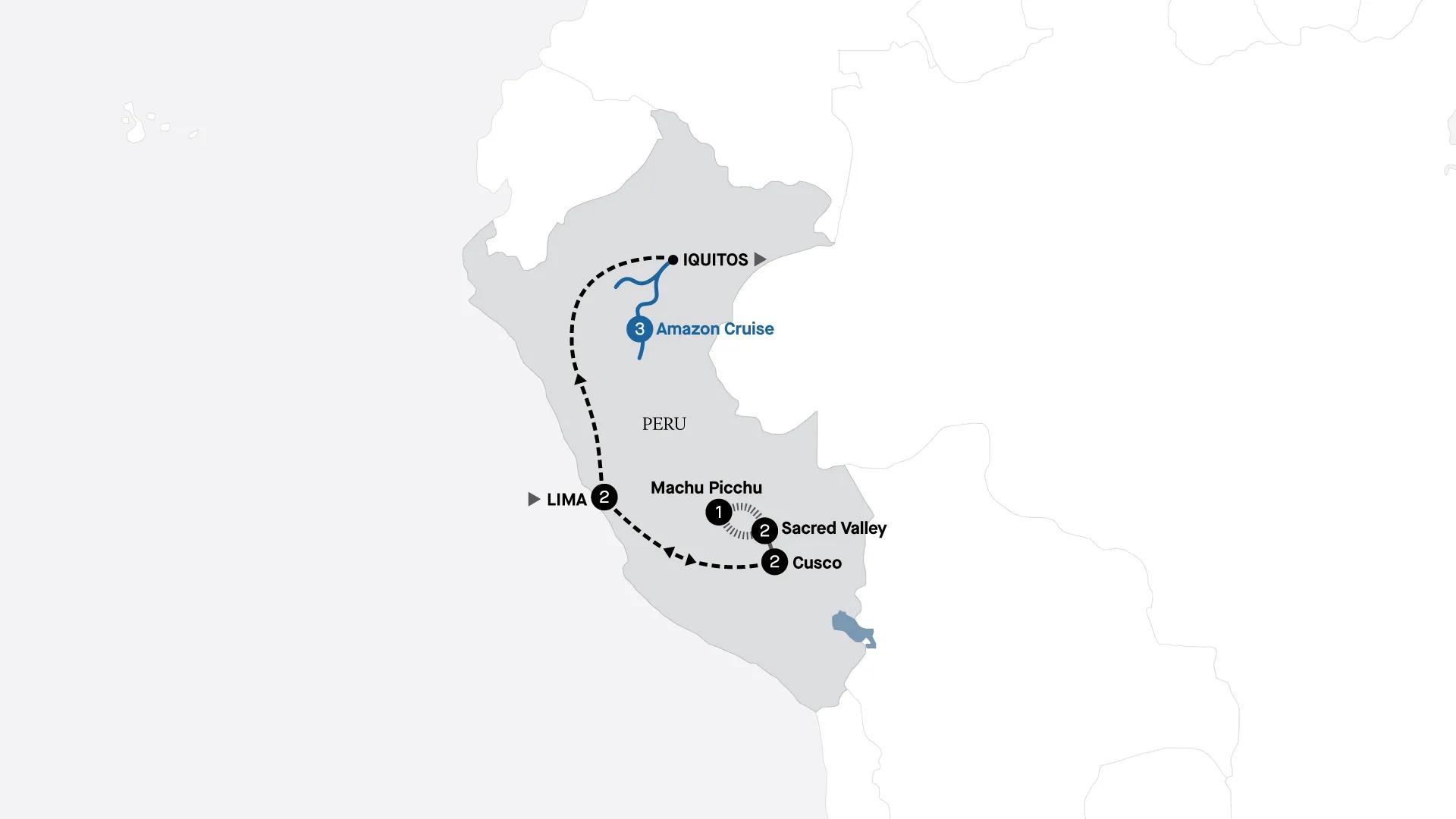 This morning, disembark the Delfin III and, en route to Iquitos visit the Tropical Amazon Aquarium. This carefully curated space celebrates the aquatic biodiversity of the region through the exhibition of more than 60 species of tropical fish, allowing to learn even more about the natural wealth of the Amazon River. Your South American adventure concludes at Iquitos Airport.