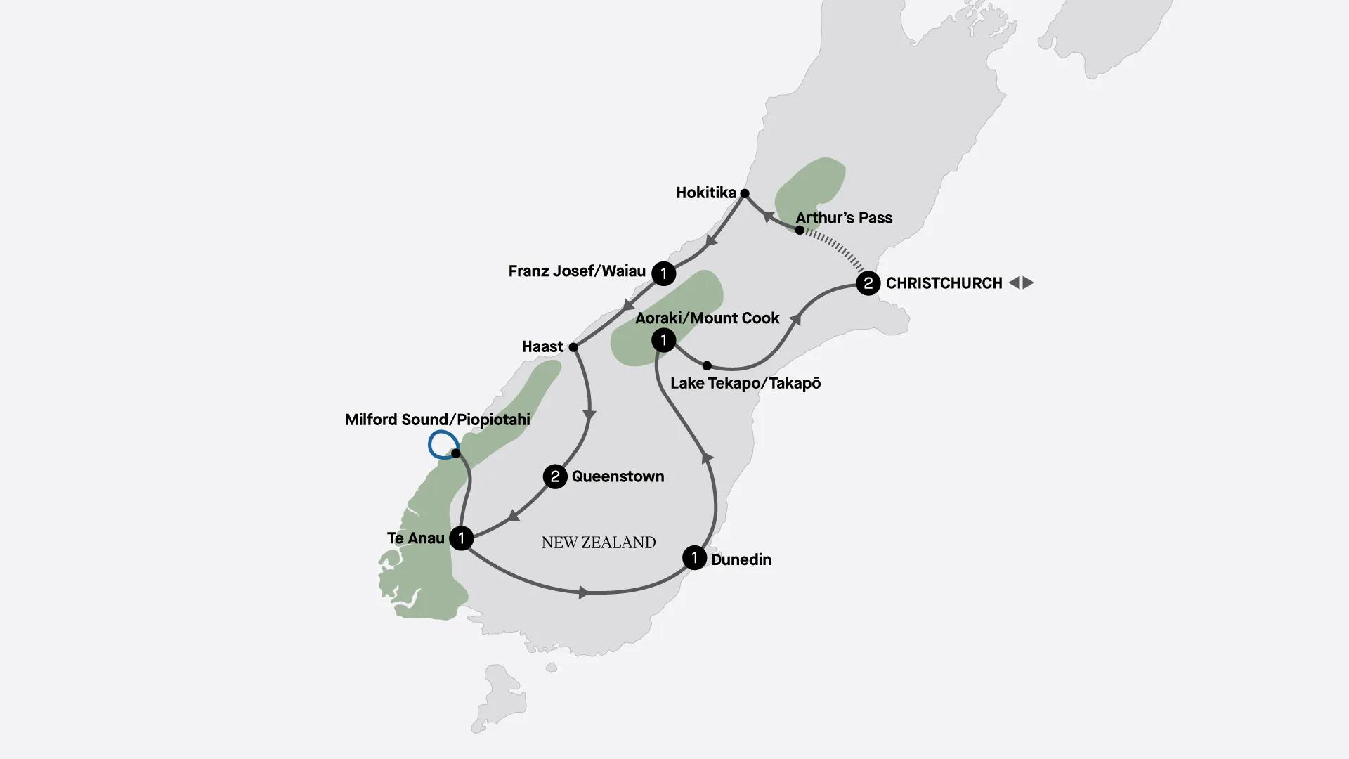 Embark on a picturesque drive today as you journey along the Milford Road and into the heart of Fiordland National Park. Wind down the Eglinton and Hollyford Valleys, then pass through the Homer Tunnel, to be met by the sight of Mitre Peak – the iconic backdrop to Milford Sound/Piopiotahi. Continue to Milford Sound/Piopiotahi, where a Signature Experience awaits. Afterwards, take a scenic drive to the lakeside settlement of Te Anau. Enjoy another Signature Experience in the evening.