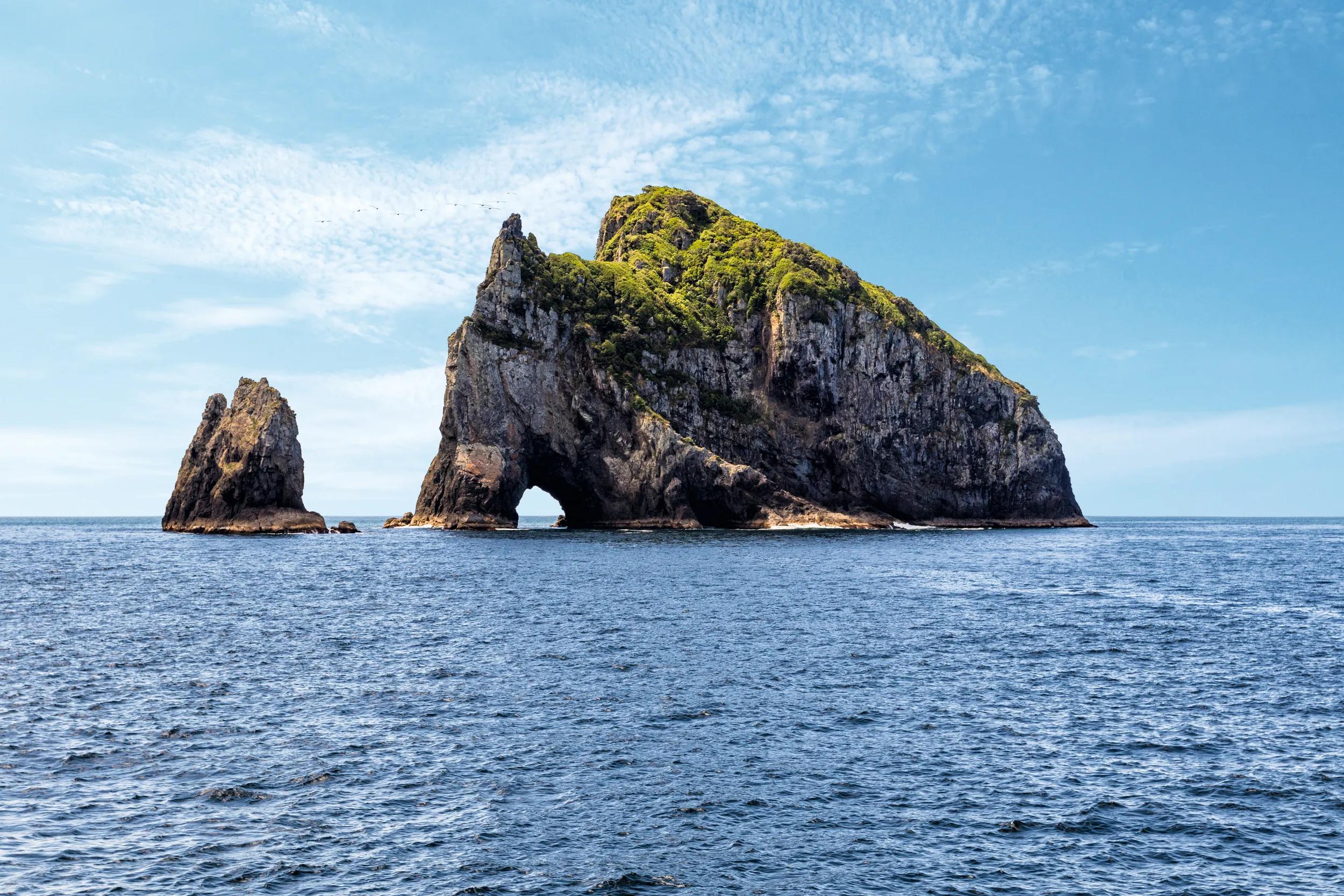 Keep an eye out for sea life encounters as you cruise through the Bay of Islands. Set off from the Cape Brett Peninsula and cruise through the distinctive Hole in the Rock formation (conditions permitting).