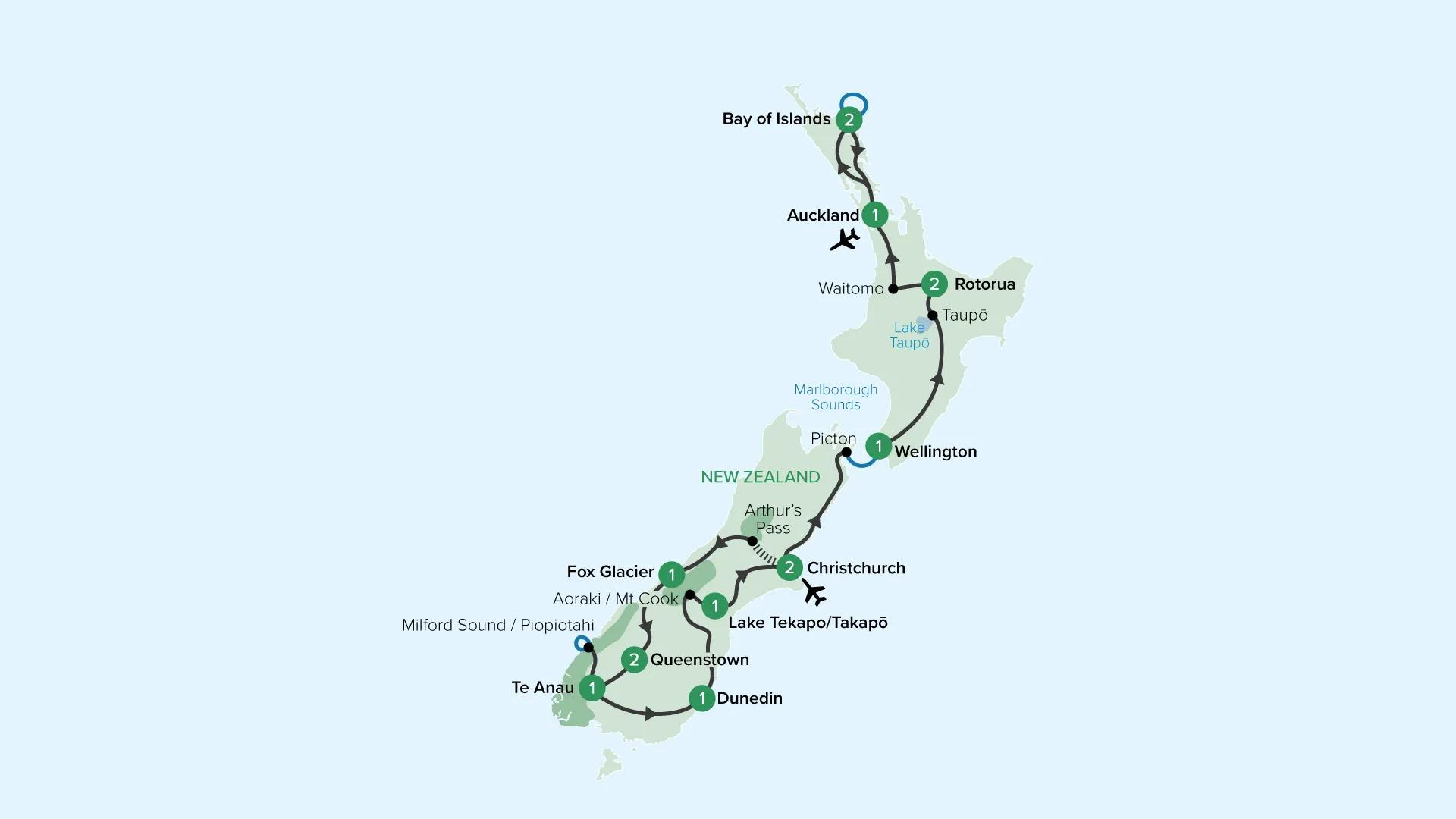 After breakfast, return to Auckland for your transfer to the airport, marking the end of your journey with us.