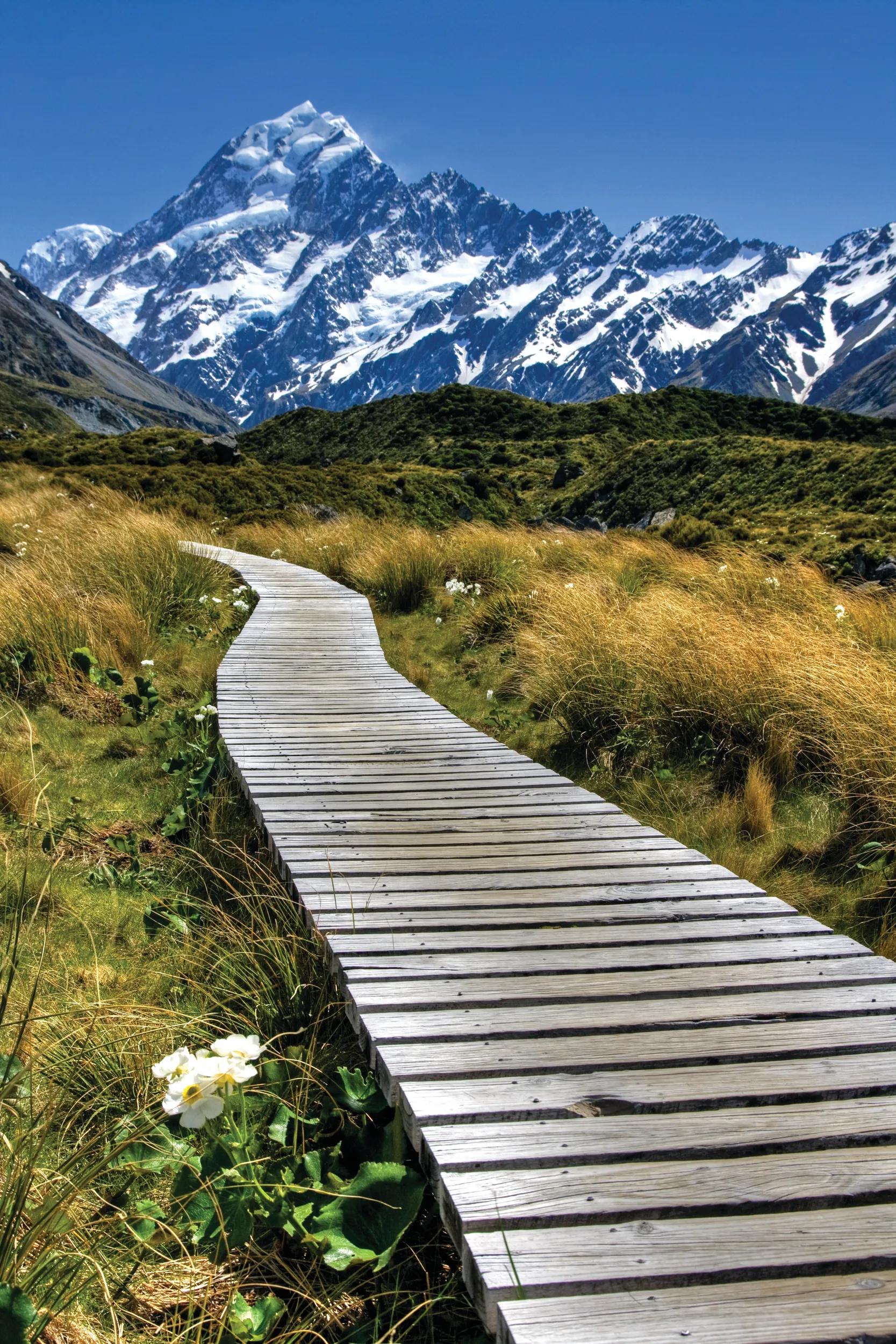 Travel through the glorious alpine landscapes of Aoraki/Mount Cook National Park and stop to admire breathtaking views of New Zealand's highest peak.