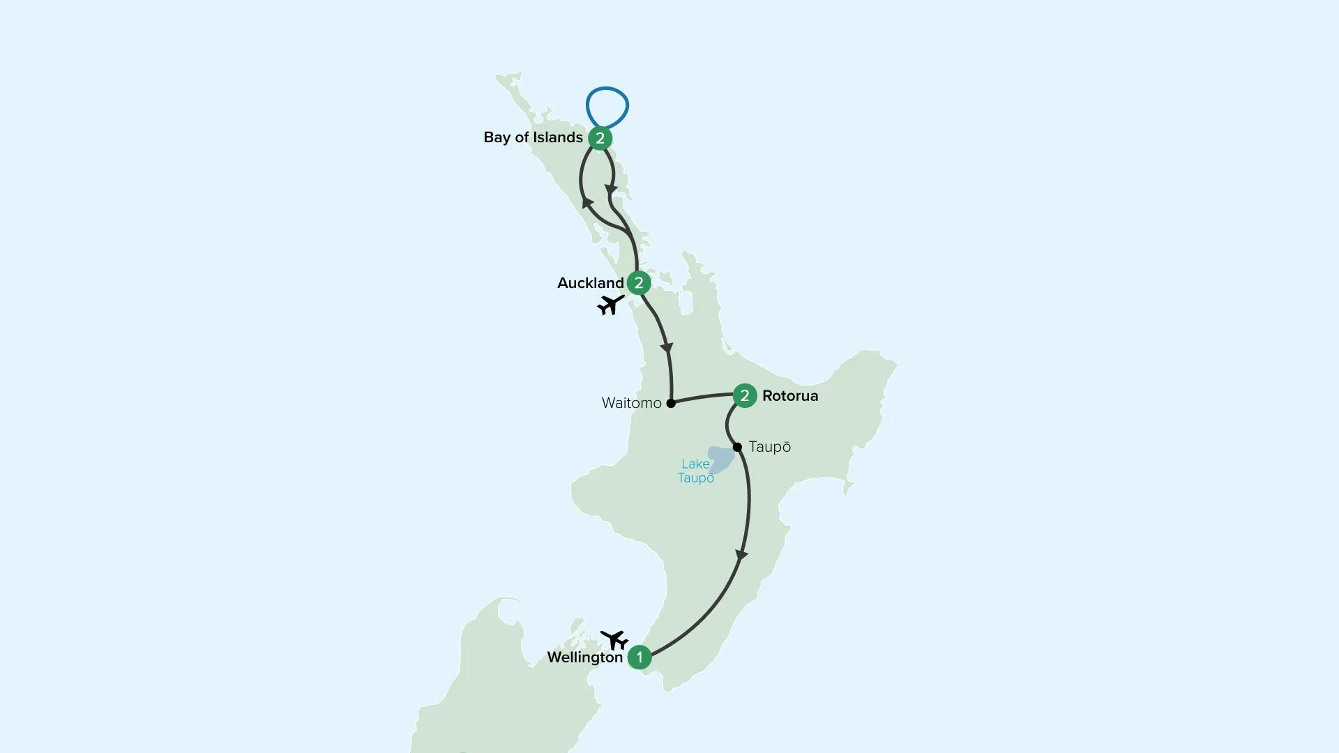Spend the morning in the stunning Bay of Islands before returning to Auckland by coach. With the rest of the afternoon free for you to spend at leisure, you may like to try one of our Enhance Your Journey select experiences (own expense); The All Blacks Experience or Wētā Workshop Unleashed.