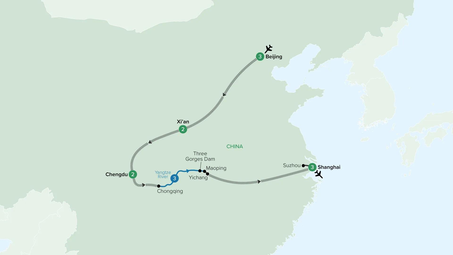After lunch, transfer to Yichang train station to board your train to Shanghai — a pulsating city bursting with skyscrapers and a window to modern China.