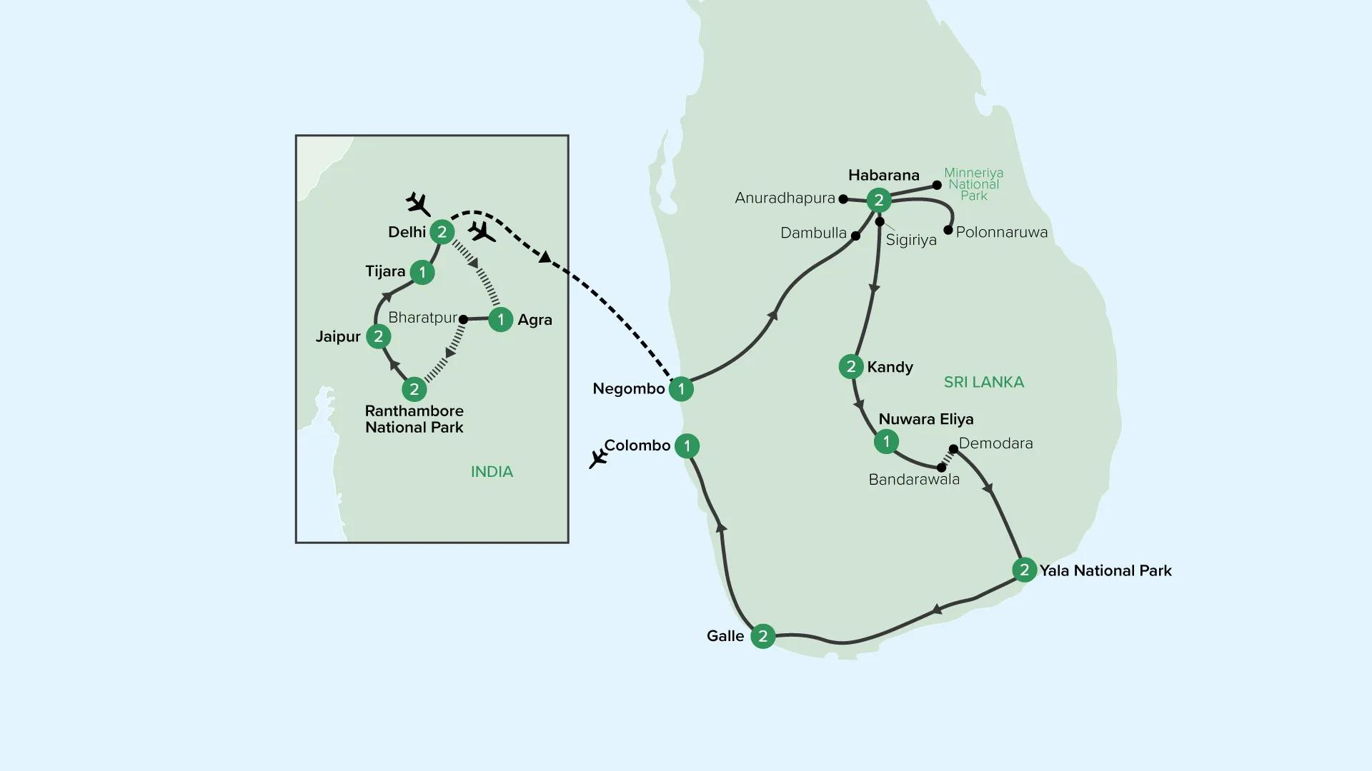 After breakfast, bid farewell to your Great Rail Journeys Tour Escort and transfer to the Delhi Airport for your included flight to the bustling coastal village of Negombo in Sri Lanka. Arrive in Negombo, where you'll be met and transferred to your hotel, admiring the beautifully preserved colonial architecture and pristine sandy beaches along the way. Check-in to your hotel and enjoy the remainder of the evening at leisure.
