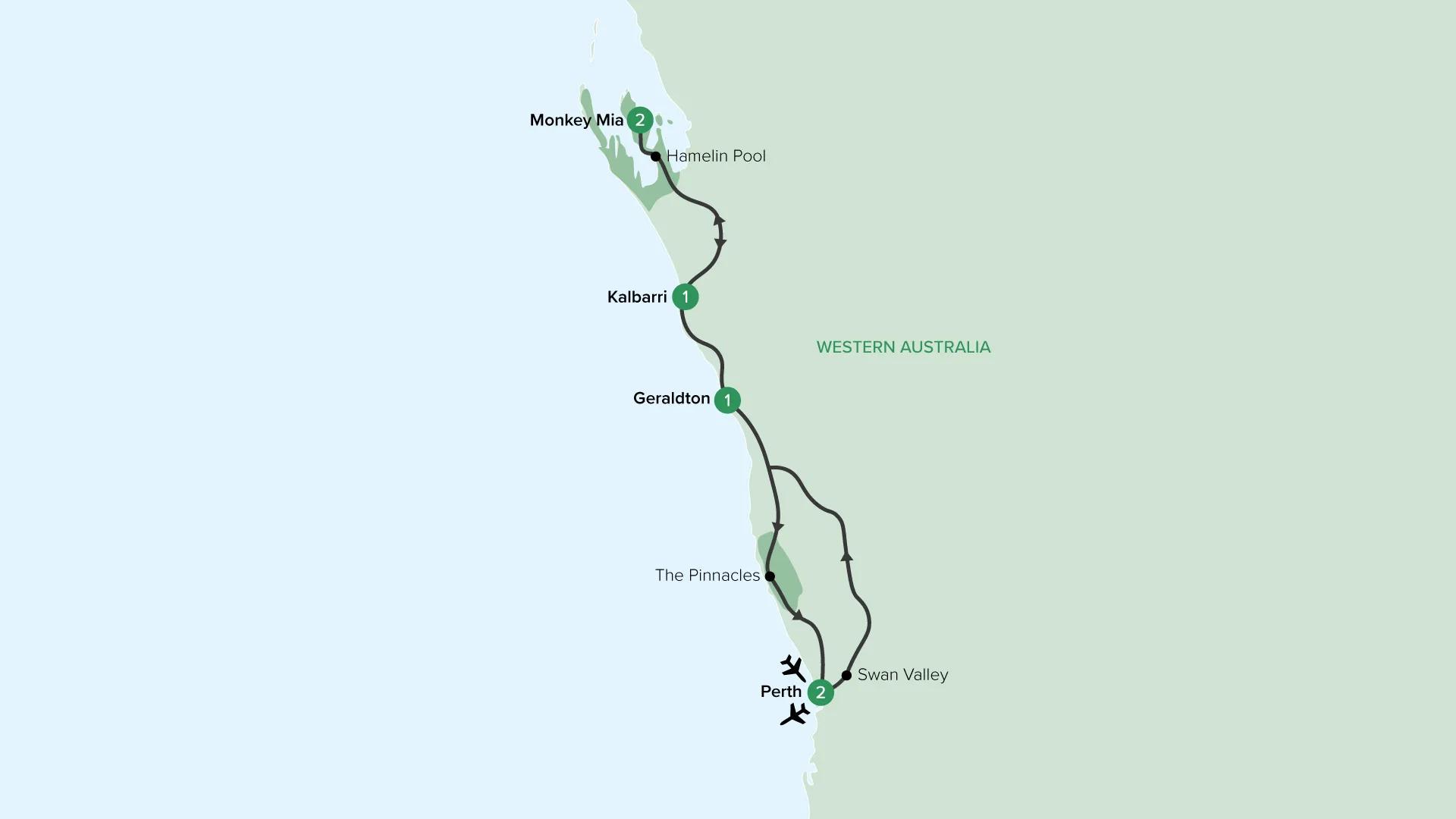 Today, visit one of the best places for dolphin interaction. At Monkey Mia, you’ll enjoy a rare up-close encounter with these clever mammals at the daily dolphin feeding experience (subject to appearance). Then, enjoy today’s Insider Experience before spending the rest of the day at your leisure.