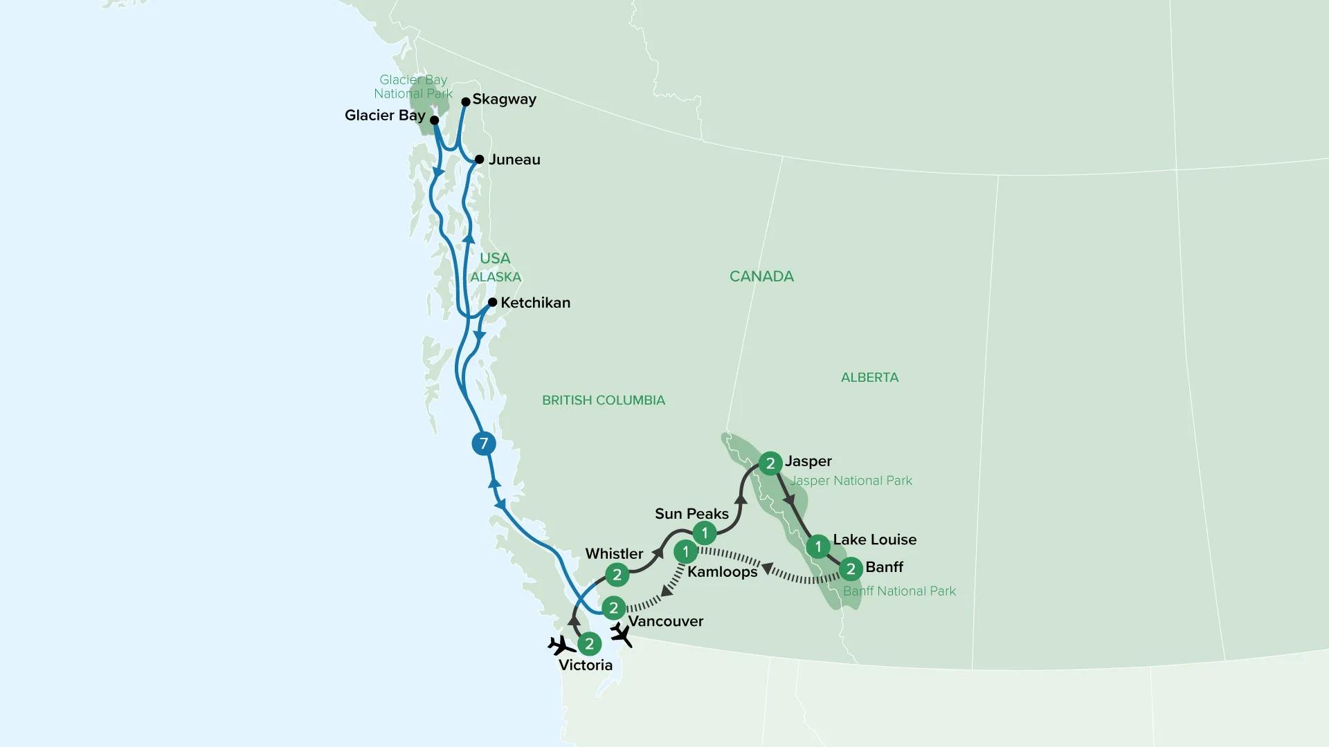 Today begins with an Insider Experience. Later, fall in love with Vancouver and embark on a sightseeing tour which takes you through some of the city’s most vibrant areas and best-loved attractions, such as Gastown and Granville Island. You may also like to choose one of our Enhance Your Journey experiences on offer. Tonight, enjoy a special Farewell Dinner with your fellow guests.