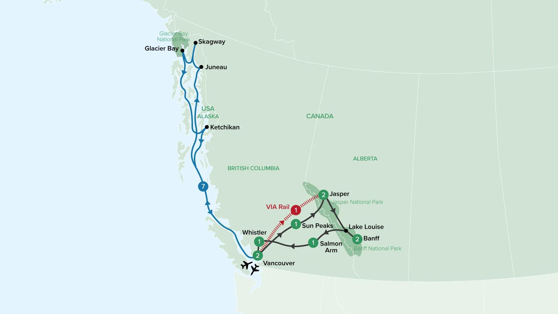 Perhaps replace days 2 and 3 with a rail journey from Vancouver to Jasper. Spend the morning exploring Vancouver before you board the VIA Rail for your exciting overnight train journey. Additional cost. Enquire for details.