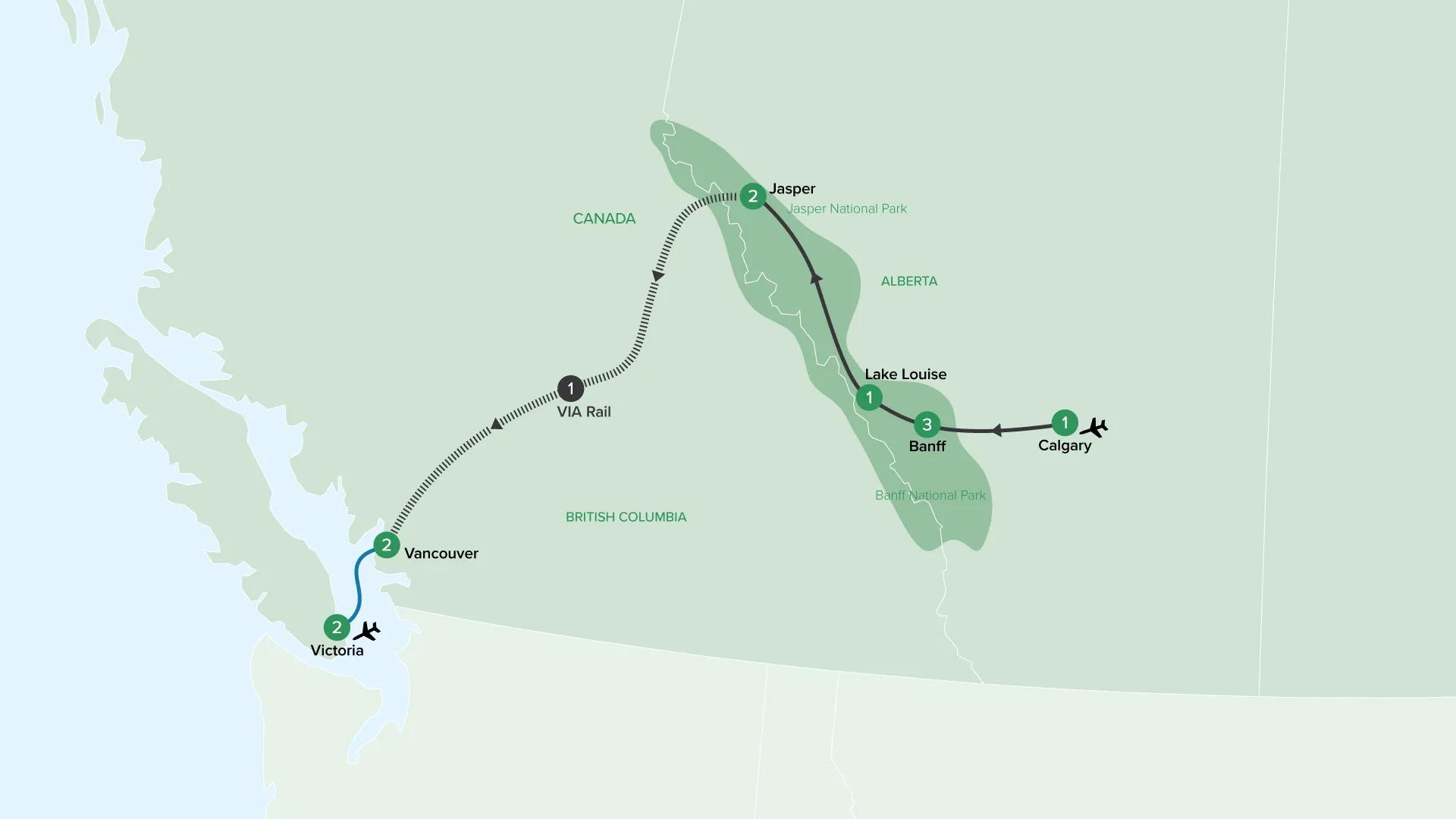 Departing Calgary, begin your journey through the Rocky Mountains to Banff National Park. In Banff, you’ll be shown around on a tour. Then the rest of the day is yours to explore.