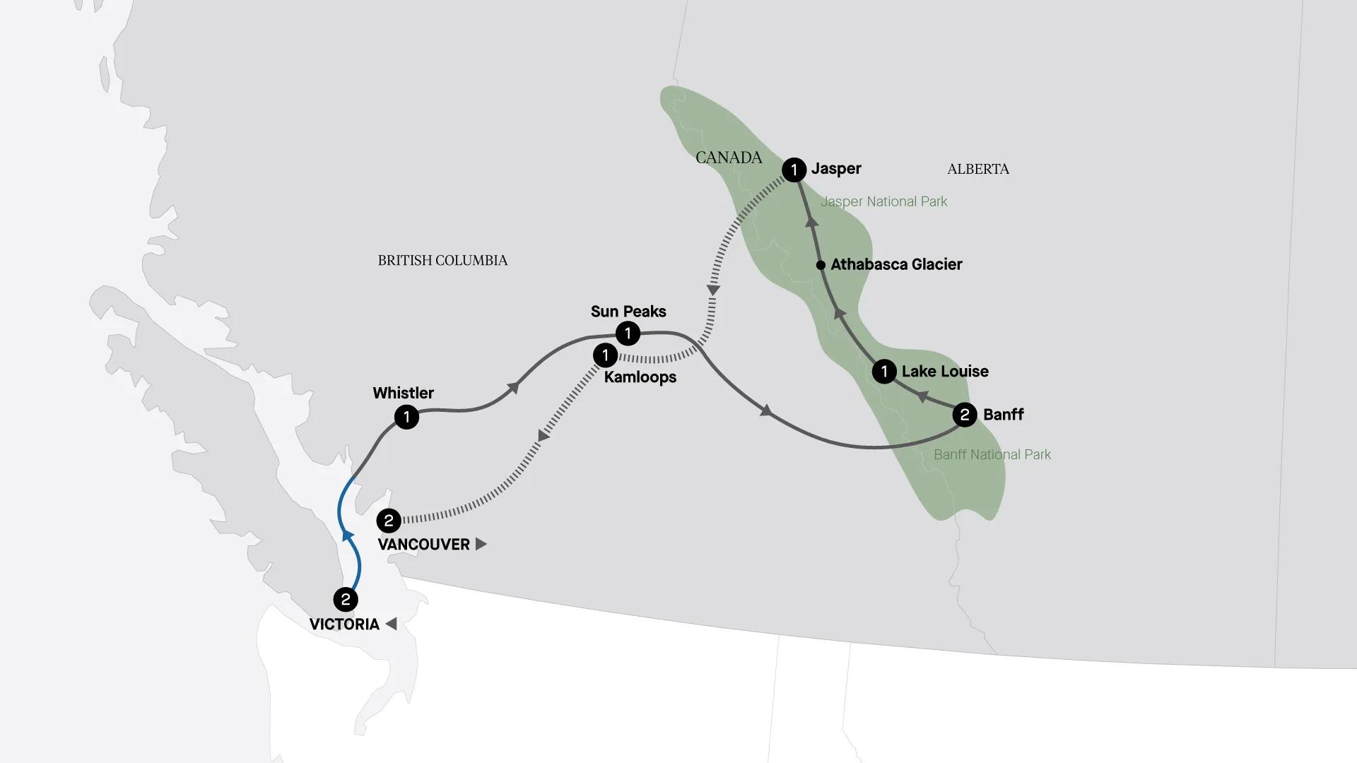 Take your BC Ferries service across the Georgia Strait. Afterwards, enjoy a scenic drive along the Sea to Sky Highway en route to Whistler. Skirt the shores of Howe Sound, then carve into the Coast Mountains and wind through lush rainforests before arriving in Whistler. Enjoy a relaxing evening at your luxurious hotel.