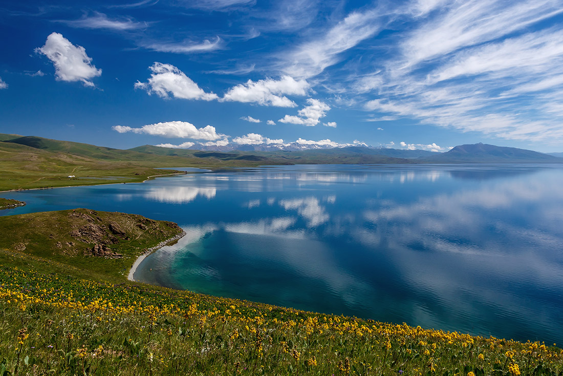 Travel to Song-Kol Lake this morning. This alpine is considered sacred to many Kyrgyz people and one of the best summer pastures for nomadic herders. On the way, stop at Kochkor to visit the local market and a women's felt co-op. The landscape today will change depending on the season, but it is sure to be beautiful no matter when you travel. In the summer, you might see nomadic herdsmen and their families watching over goats, sheep and horses. When you arrive later today, spend some time exploring the surroundings at your own pace. Tonight, fall asleep in yurts set up along the shore.