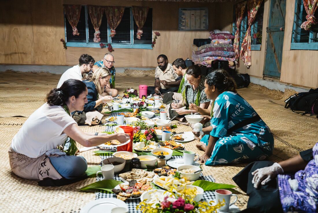 Soak up island life on Nananu-i-Ra Island this morning – sunrise is the perfect time to relax on the beach or cool off with a swim in the South Pacific. After breakfast, strap on a snorkel and get exploring underwater with your group, looking for colourful tropical fish. In the afternoon, you’ll head inland to Naga village, presenting another sevusevu to be welcomed and invited in. Enjoy a stroll through the surrounding food gardens and a communal dinner in the village. Tonight you’ll stay in the village community hall, an essential Fijian experience.