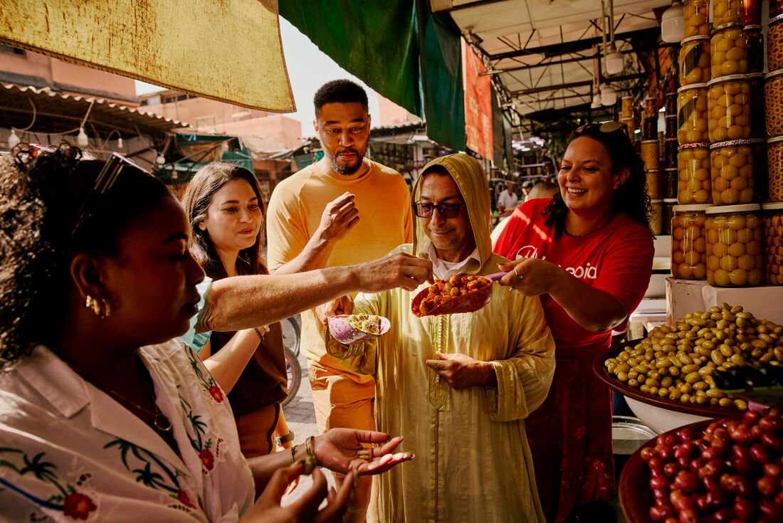 Salaam Alaikum! Welcome to Morocco. Your adventure begins in Marrakech with a welcome meeting at 6 pm tonight. If you arrive early, why not visit the Dar Si Said Museum or nearby Saadian Tombs. Maybe chill out in the Marjorelle Gardens, luxuriate in a hammam or see Marrakech from above on a hot air balloon ride. After the meeting, head out to explore the city’s lively Djemaa el-Fna – one of the largest public spaces in the world, unique to Marrakech. When night falls it transforms into a hive of activity. Henna painters, performers and storytellers share the square with a street food bazaar packed with stalls. You’ll have an included welcome dinner here while the performers vie for your attention.