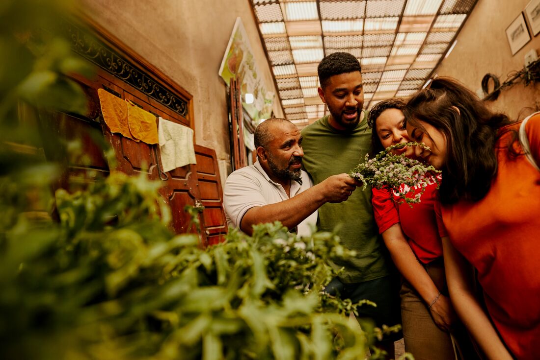 Today, you’ll head to your final destination – Marrakech. On the way, stop by a women's cooperative, where they produce locally grown argan oil. A product that’s endemic to Morocco and used for both culinary and cosmetic purposes, you’ll see the trees that produce the argan oil and learn the process of how the workers extract it. Learn about how it’s used and all the benefits before continuing to Marrakech. When you arrive, a local guide will take you on an orientation walk and tasting trail through the medina. Visit a locally owned coffee shop for an insight into how this cultural practice uses hot sand to brew a unique, spiced coffee. This evening, maybe join the crowds for dinner at the famous Djemaa el-Fna – one of the largest public spaces in the world and unique to Marrakech. When night falls on this square, it transforms into a hive of activity, with henna painters, performers and storytellers sharing the square with a street food bazaar (where you can try snail soup)!