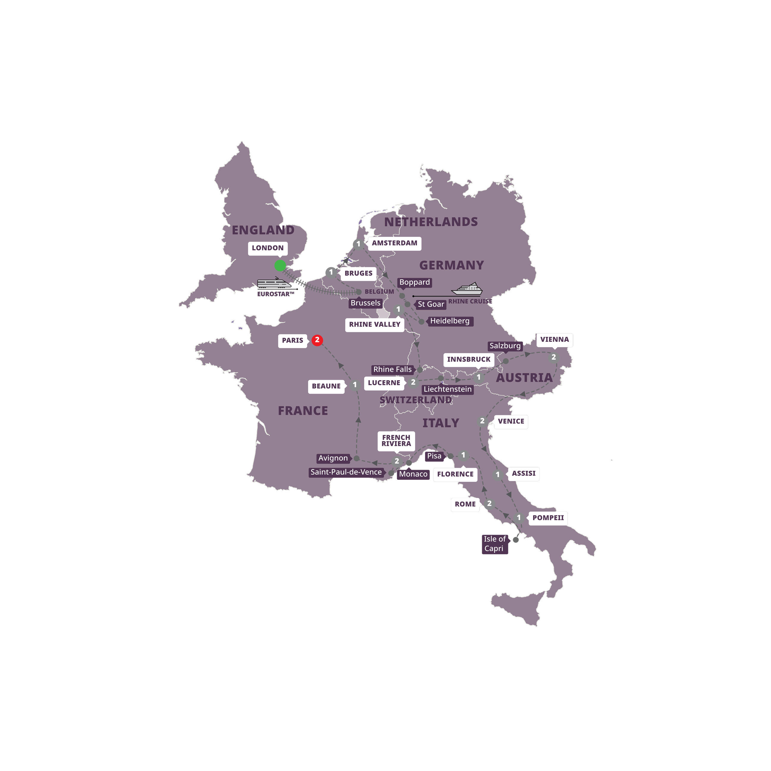Rub shoulders with artists and actors in the medieval hilltop town of Saint-Paul-de-Vence before enjoying an afternoon at leisure in the French Riviera to indulge in the laid-back seaside atmosphere. Wander along the scenic promenade and embrace cafe culture on the tranquil shores of the Mediterranean, stroll through the chic city streets shopping at the French Riviera's fashionable boutiques or relax on the beach watching the sun set. Or perhaps join an Optional Experience to see spectacular views of one of the most beautiful coastlines in Europe and pay an aromatic visit to the historic Fragonard perfumery to learn how French fragrances are crafted before trying some specialities from the region at a local restaurant.