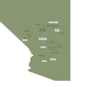 Hoodoos to your back and high-living ahead, depart on the last leg of your journey to Las Vegas with a stop in St. George, Utah for lunch on your own. You'll be transferred to Las Vegas International Airport, or your hotel if you're extending your stay.