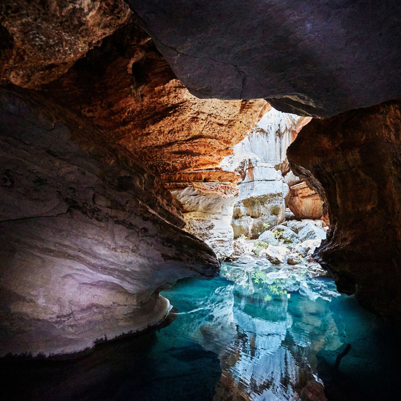 The Kimberley boasts a geological history that is nothing short of spectacular. On this MAKE TRAVEL MATTER® Experience, explore the Mimbi Caves with an Indigenous guide to observe the delicate limestone formations, brilliantly vivid colours and crystal-clear freshwater pools that remain from the Devonian Great Barrier Reef that formed over 350 million years ago. Discover ancient rock paintings before hearing the Gooniyandi Dreaming story, while enjoying billy tea and damper. Travel through the Kimberley towards the remote township of Fitzroy Crossing.