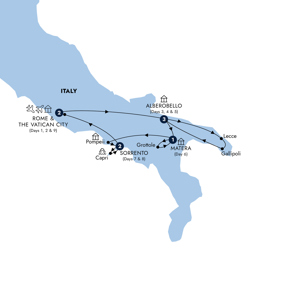 The brilliant blue sky set against the whitewashed buildings of southern Italy’s towns and villages is sure to inspire any curious traveller. After a scenic journey south from Rome, you’ll arrive in Puglia, where the iconic trulli of Alberobello await. In the late afternoon, join a Local Expert for a guided stroll through this UNESCO World Heritage Site. Learn how these unique, conical-roofed dwellings were ingeniously constructed without mortar, and hear the stories behind their origins and preservation. As you wander through this enchanting town, you’ll uncover the region’s rustic charm and gain fresh insights into traditional Apulian life—an experience that’s both authentic and unforgettable.