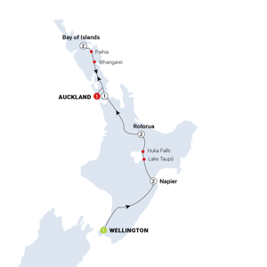 Arrive and settle into your hotel in New Zealand’s cool little capital of Wellington. You may like to visit Te Papa, the Museum of New Zealand, home to an extraordinary collection of artefacts, including an eye-opening exhibit dedicated to Māori history (entrance fee applies). Later, meet up with your fellow adventure-seekers for drinks before you tour the North Island of New Zealand.