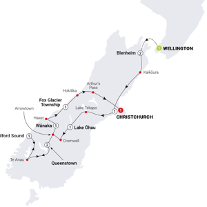 New Zealand’s cool little capital, Wellington is the kind of place you could easily lose yourself in for a day. Good thing you arrived early. Meet your Travel Director and fellow travel companions this afternoon for an orientation tour of Wellington where you will visit the peak of Mount Victoria, and short stroll will reward you with 360-degree views of the surrounding harbour and city. After the tour you may like to visit Te Papa, the Museum of New Zealand, home to an extraordinary collection of artefacts, including an eye-opening exhibit dedicated to Māori history (entrance fee applies). Later, meet up with your fellow adventure-seekers for a drinks before your tour of the South Island of New Zealand.